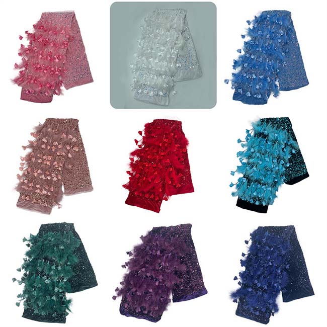 As a leading fabric manufacturer in China we have been involved in the design, produce, research and marketing for dress decor fabrics for more than 20 years. For 3mm/5mm/18mmetc sequin fabrics, the size of the sequins can be custom; the shape of the sequins can also be custom; the color of the sequins can be custom; the density of the embroidery also be custom accordingly. For 3d embroidery fabrics, the embroidery pattern can be custom, the color can be custom; For beading fabrics, embroidery pattern can also be custom, color can be custom as well. Sure for package can be custom as well. In a word, we are doing at our best to meet all oem & odm requirement.